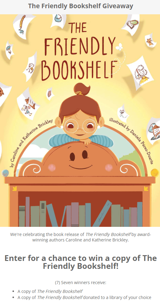 I have partnered with The Children’s Book Review and authors Blossom Children’s Media Group, LLC for a special author interview with Caroline and Katherine Brickley, authors of The Friendly Bookshelf. Be sure to check out the book giveaway at the end of the interview.